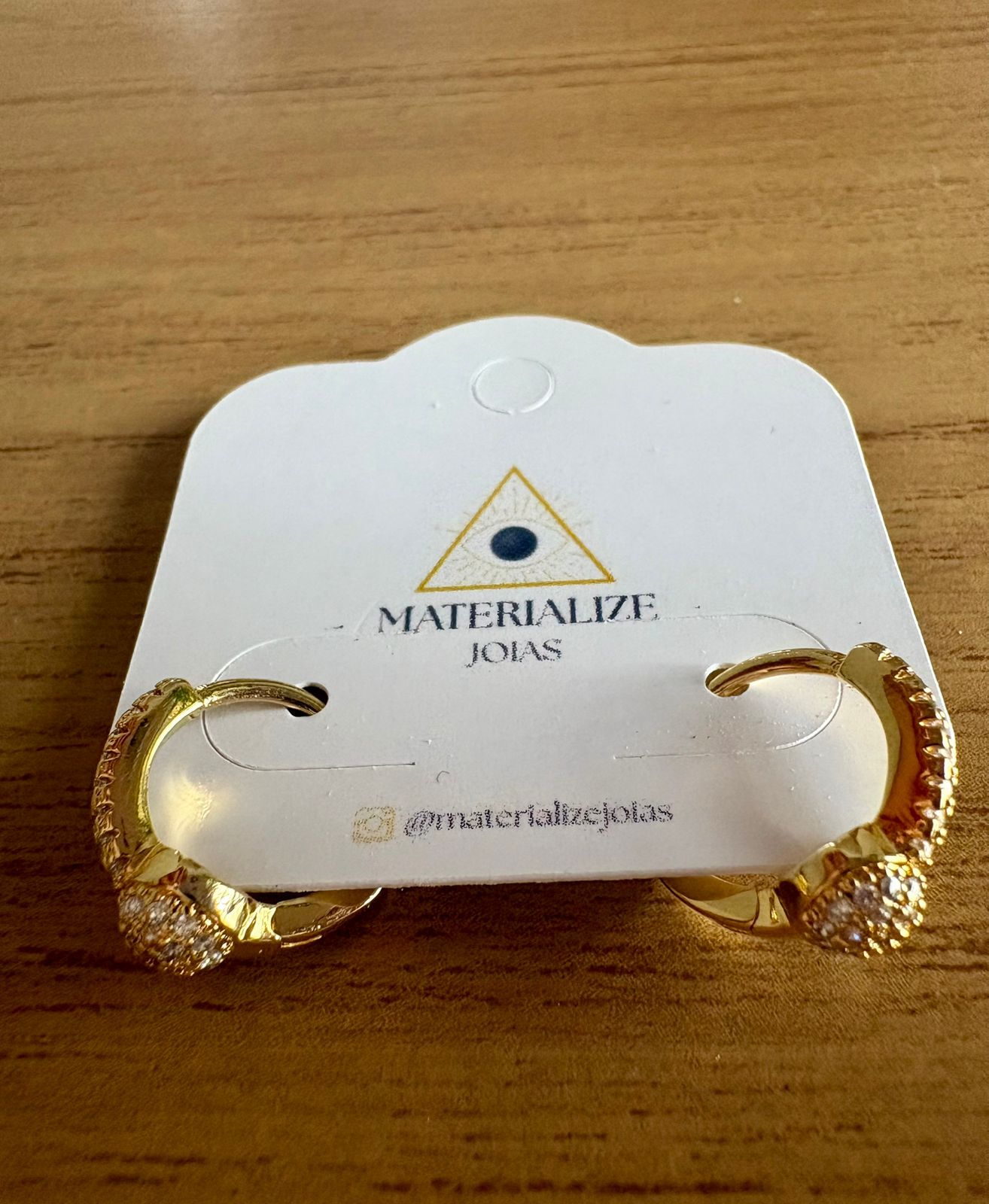 Argola revestida com ouro 18k com bolinha grande e zircônias