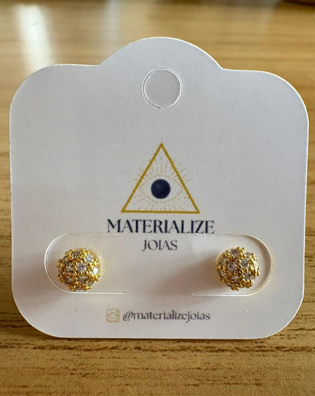 Brinco bolinha revestida em outro 28k com zircônias brancas (Pequeno)